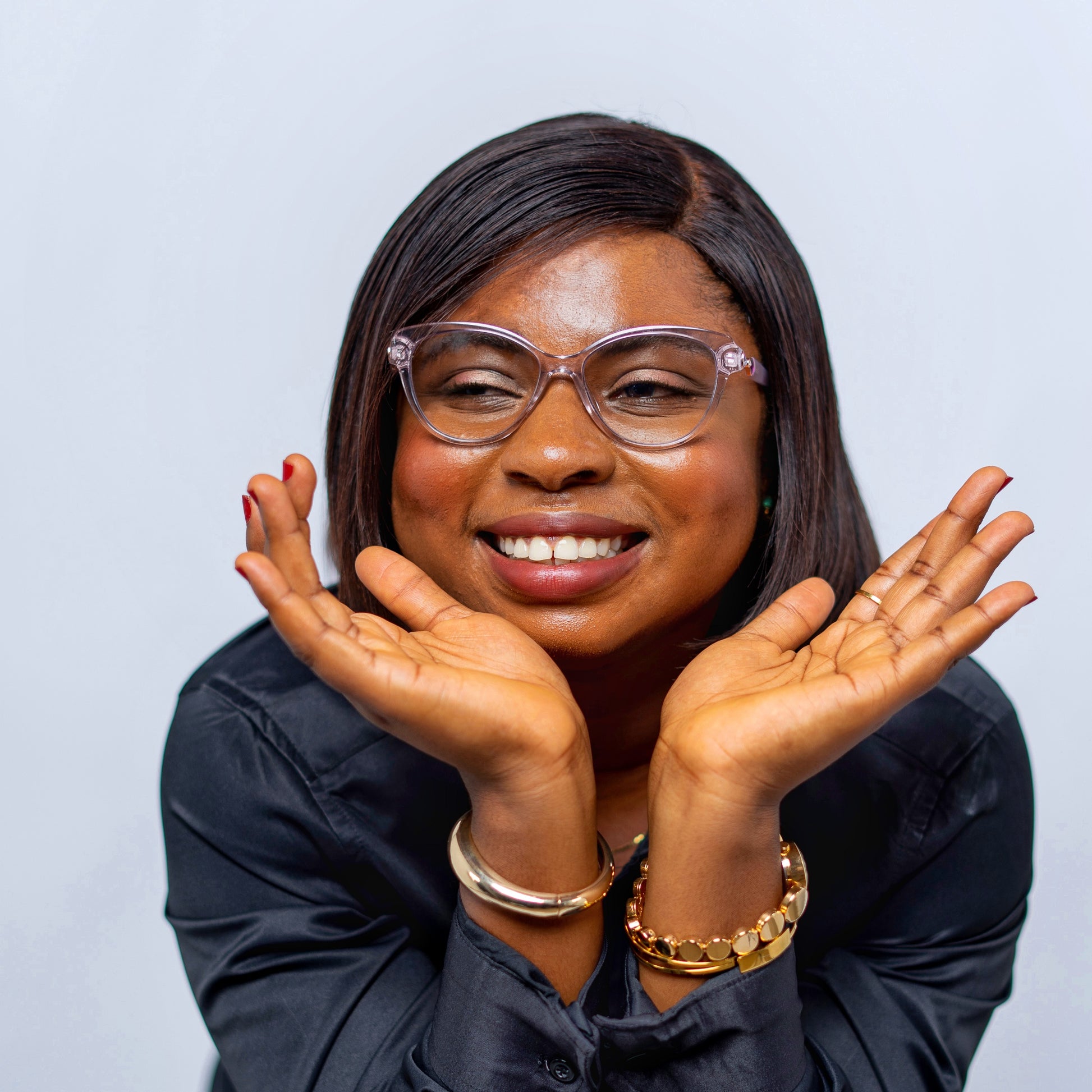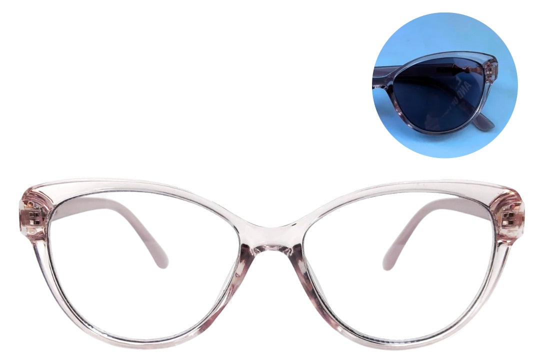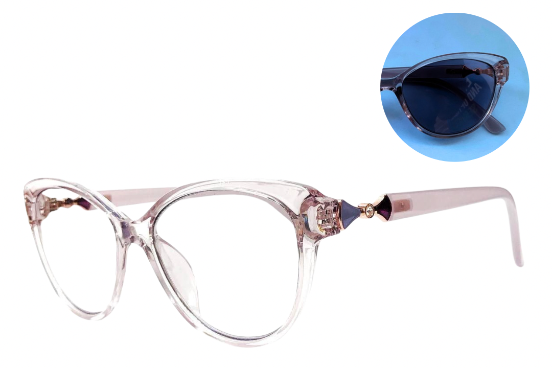 Vera blends a clear cat-eye design with soft curves. The standout detail is the colorful cone-shaped temple embellishments, that add a playful, unique twist to a classic silhouette. This subtly transparent frame is crafted entirely from TR90 for a lightweight feel and flexible fit—giving you power, poise and elegance in one frame.