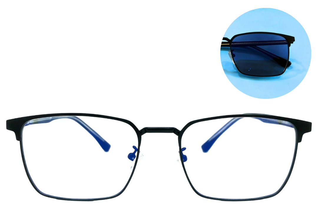 Zen is a rectangular shaped design made from high quality stainless steel. It's made with photochromic and antiblue light lenses, that help to reduce eye strain and digital fatigue, while also providing UV400 protection from sun exposure.